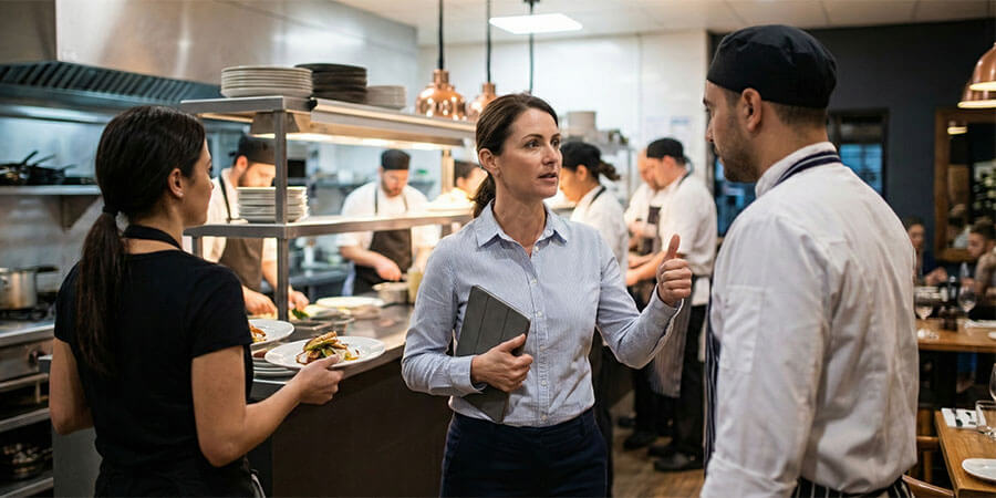 Coach in the moment, not after the fact. When a server mishandles a table or a cook sends out a substandard plate, address it immediately - briefly, specifically, and privately if possible. "Next time that steak comes back, re-fire it before I have to tell you" is more effective than a conversation about standards two days later. For deeper strategies on improving server productivity during shifts, we cover coaching techniques that work in real time.