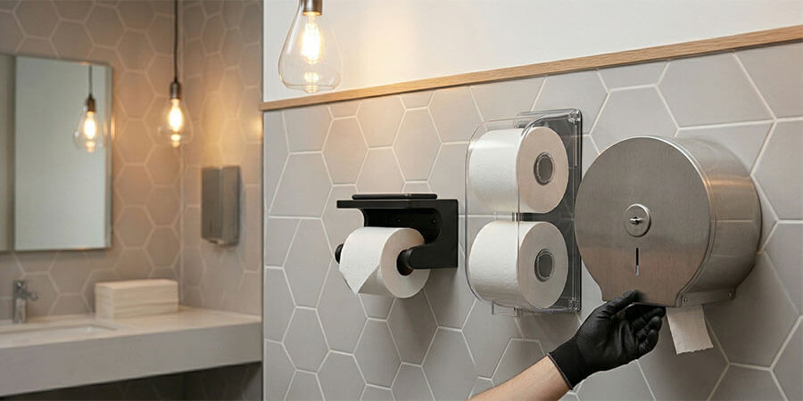 The main types most facilities compare are standard single-roll holders, dual-roll holders, jumbo-roll dispensers, multi-roll or stub-roll systems, and enclosed higher-capacity dispensers. The right choice depends on traffic, refill frequency, and the roll format you want to use consistently.