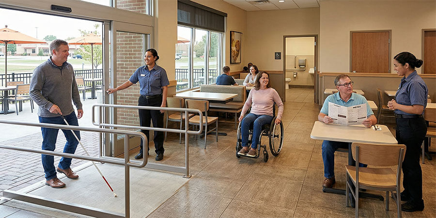 Accessibility is not only about wheeled mobility or fixture dimensions. Guests may also be affected by noise, lighting, pace, crowding, or the clarity of the ordering process.