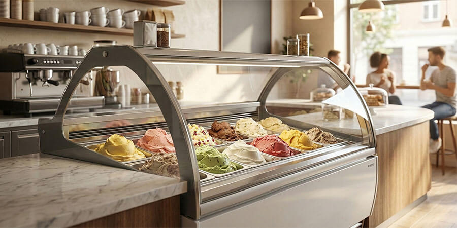 What this means for your cabinet: You need a display case with precise digital temperature controls that can hold a warmer range than a standard ice cream freezer. A cabinet locked at 0°F will make your gelato too hard to scoop and strip away the texture customers expect. Look for units with adjustable temperature ranges that reach into the teens and low twenties. For a full comparison of frozen dessert storage and serving temperatures across gelato, ice cream, frozen yogurt, and sorbet, the ice cream freezer buying guide breaks it down in detail.