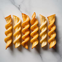 - Cut Styles: Straight fries (1/4"-1/2"); curly/spiral fries; chip twisters; ribbon fries; garnish cuts; specialty cuts