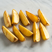 - Peel potatoes completely or leave skin on depending on menu preferences