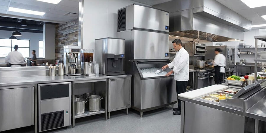 Commercial ice machines are essential for restaurants, bars, hotels, and healthcare facilities; anywhere consistent ice production keeps operations running smoothly. This guide covers the three main ice machine types (modular, undercounter, dispenser), ice cube styles for different applications, industry-standard consumption formulas, and cooling system options. Use our sizing charts and selection criteria to choose the right ice machine for your specific needs.
