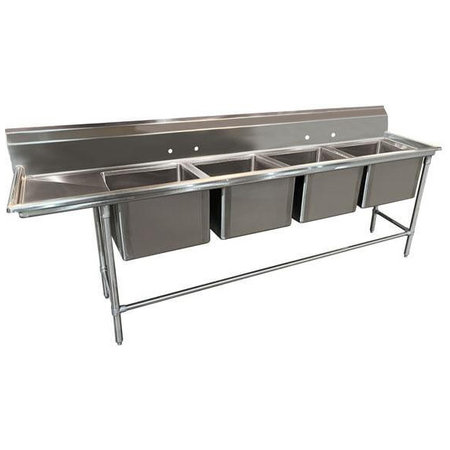 Advance Tabco 94-4-72-18L, 96" Regaline Four Compartment Sink w/ 18" Left Side Drainboard, 14" Deep Bowls