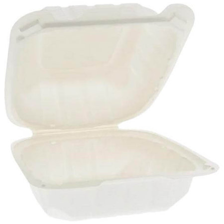 AmerCareRoyal MFHL6631CWLW, 6" x 6" x 3" MFPP Clamshell Take-Out Container, White (150/case)