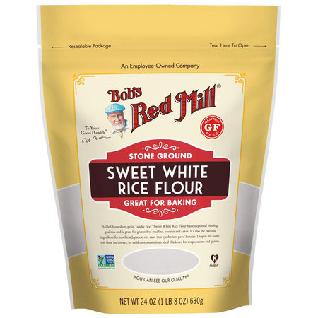 Bob's Red Mill's Sweet White Rice Flour is milled from glutinous rice, often known as โsticky rice.โ Glutinous rice flour is excellent for baking gluten free bread, muffins and cakes. It is also a superb thickener for soups, sauces and gravies. Glutinous sweet white rice flour is naturally gluten free, rich in carbohydrates and low in fat. Glutinous rice flour is used more like a starch in baking, adding moisture to baked goods. Itโs not sweet like sugar, despite its name, but it is often used for desserts and is one of the main ingredients for making Japanese mochi or Hawaiian butter mochi, which is often topped with grated coconut.
