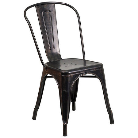 Flash Furniture CH-31230-BQ-GG, Indoor / Outdoor Stackable Steel Dining Chair, Black Antique Gold