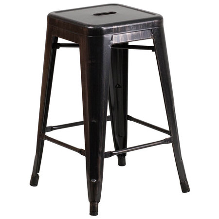 Flash Furniture CH-31320-24-BQ-GG, Indoor / Outdoor Stackable Steel Counter Height Stool, Black Antique Gold
