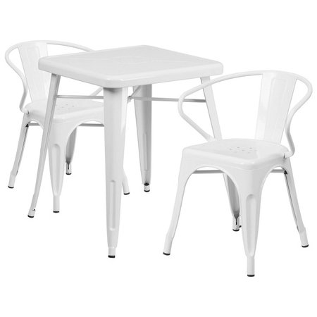 Flash Furniture CH-31330-2-70-WH-GG, 23 3/4" Square Top Indoor / Outdoor Steel Cafe Dining Set w/ 2 Arm Chairs, White