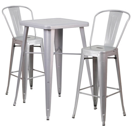 Flash Furniture CH-31330B-2-30GB-SIL-GG, 23 3/4" Square Top Indoor / Outdoor Bar Height Metal Dining Set w/ 2 Barstools, Silver