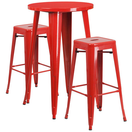 Flash Furniture CH-51080BH-2-30SQST-RED-GG, 24" Round Top Indoor / Outdoor Bar Height Metal Dining Set w/ 2 Barstools, Red