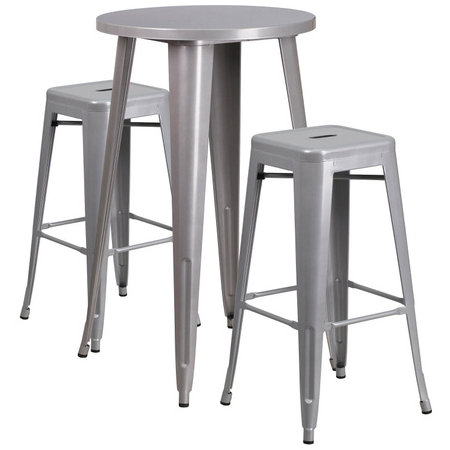 Flash Furniture CH-51080BH-2-30SQST-SIL-GG, 24" Round Top Indoor / Outdoor Bar Height Metal Dining Set w/ 2 Barstools, Silver