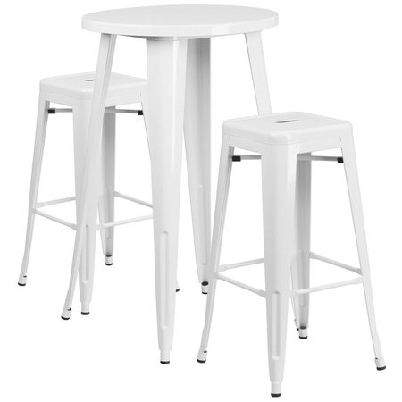 Flash Furniture CH-51080BH-2-30SQST-WH-GG, 24" Round Top Indoor / Outdoor Bar Height Metal Dining Set w/ 2 Barstools, White