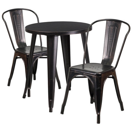 Flash Furniture CH-51080TH-2-18CAFE-BQ-GG, 24" Round Top Indoor / Outdoor Steel Cafe Dining Set w/ 2 Chairs, Black Antique Gold