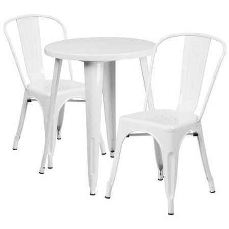 Flash Furniture CH-51080TH-2-18CAFE-WH-GG, 24" Round Top Indoor / Outdoor Steel Cafe Dining Set w/ 2 Chairs, White