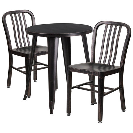 Flash Furniture CH-51080TH-2-18VRT-BQ-GG, 24" Round Top Indoor / Outdoor Steel Cafe Dining Set w/ 2 Chairs, Black Antique Gold