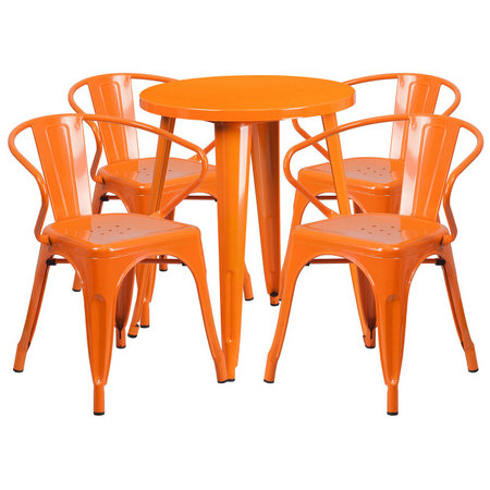 Flash Furniture CH-51080TH-4-18ARM-OR-GG, 24" Round Top Indoor / Outdoor Steel Cafe Dining Set w/ 4 Arm Chairs, Orange