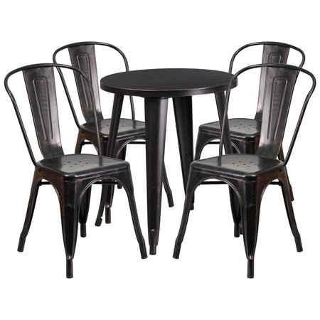 Flash Furniture CH-51080TH-4-18CAFE-BQ-GG, 24" Round Top Indoor / Outdoor Steel Cafe Dining Set w/ 4 Chairs, Black Antique Gold
