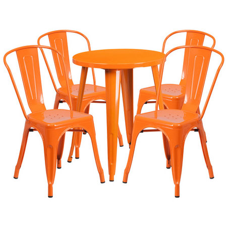 Flash Furniture CH-51080TH-4-18CAFE-OR-GG, 24" Round Top Indoor / Outdoor Steel Cafe Dining Set w/ 4 Chairs, Orange