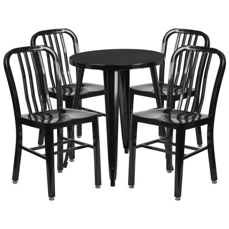 Flash Furniture CH-51080TH-4-18VRT-BK-GG, 24" Round Top Indoor / Outdoor Steel Cafe Dining Set w/ 4 Chairs, Black
