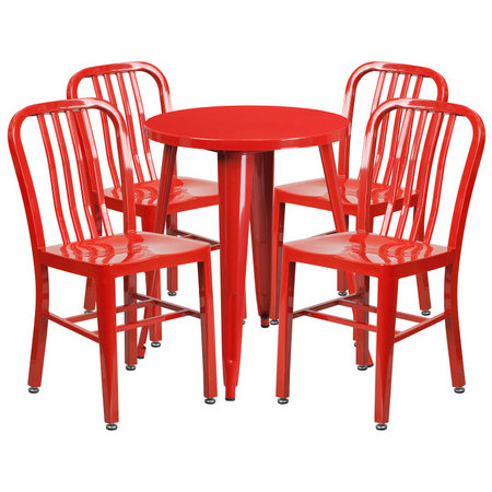Flash Furniture CH-51080TH-4-18VRT-RED-GG, 24" Round Top Indoor / Outdoor Steel Cafe Dining Set w/ 4 Chairs, Red