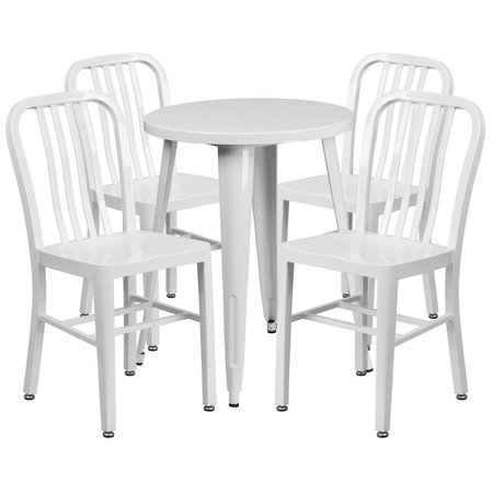 Flash Furniture CH-51080TH-4-18VRT-WH-GG, 24" Round Top Indoor / Outdoor Steel Cafe Dining Set w/ 4 Chairs, White