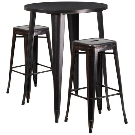 Flash Furniture CH-51090BH-2-30SQST-BQ-GG, 30" Round Top Indoor / Outdoor Bar Height Metal Dining Set w/ 2 Barstools, Black Antique Gold