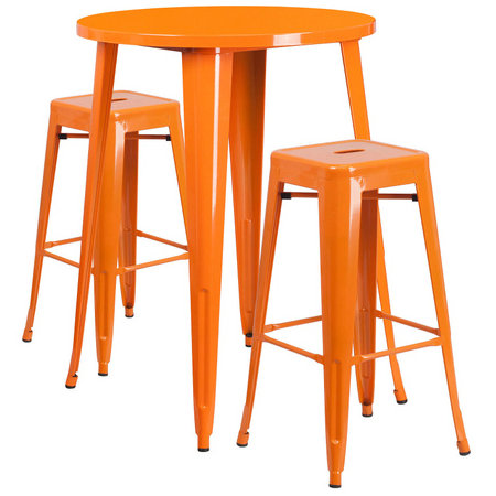 Flash Furniture CH-51090BH-2-30SQST-OR-GG, 30" Round Top Indoor / Outdoor Bar Height Metal Dining Set w/ 2 Barstools, Orange