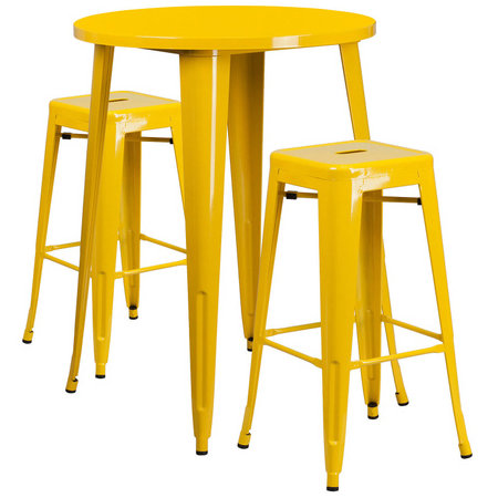 Flash Furniture CH-51090BH-2-30SQST-YL-GG, 30" Round Top Indoor / Outdoor Bar Height Metal Dining Set w/ 2 Barstools, Yellow
