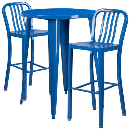 Flash Furniture CH-51090BH-2-30VRT-BL-GG, 30" Round Top Indoor / Outdoor Bar Height Metal Dining Set w/ 2 Barstools, Blue