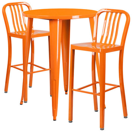 Flash Furniture CH-51090BH-2-30VRT-OR-GG, 30" Round Top Indoor / Outdoor Bar Height Metal Dining Set w/ 2 Barstools, Orange