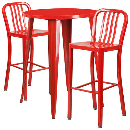 Flash Furniture CH-51090BH-2-30VRT-RED-GG, 30" Round Top Indoor / Outdoor Bar Height Metal Dining Set w/ 2 Barstools, Red