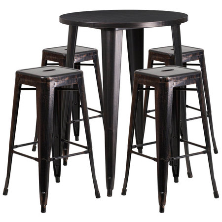 Flash Furniture CH-51090BH-4-30SQST-BQ-GG, 30" Round Top Indoor / Outdoor Bar Height Metal Dining Set w/ 4 Barstools, Black Antique Gold