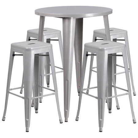 Flash Furniture CH-51090BH-4-30SQST-SIL-GG, 30" Round Top Indoor / Outdoor Bar Height Metal Dining Set w/ 4 Barstools, Silver