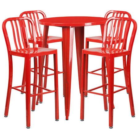 Flash Furniture CH-51090BH-4-30VRT-RED-GG, 30" Round Top Indoor / Outdoor Bar Height Metal Dining Set w/ 4 Barstools, Red