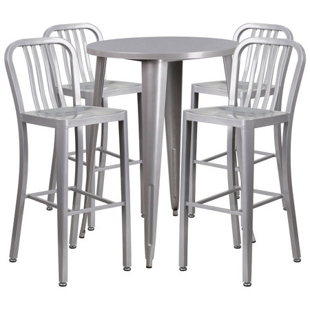 Flash Furniture CH-51090BH-4-30VRT-SIL-GG, 30" Round Top Indoor / Outdoor Bar Height Metal Dining Set w/ 4 Barstools, Silver