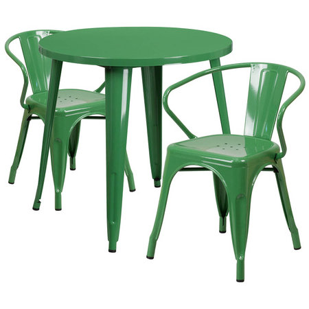 Flash Furniture CH-51090TH-2-18ARM-GN-GG, 30" Round Top Indoor / Outdoor Steel Cafe Dining Set w/ 2 Arm Chairs, Green
