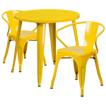 Flash Furniture CH-51090TH-2-18ARM-YL-GG, 30" Round Top Indoor / Outdoor Steel Cafe Dining Set w/ 2 Arm Chairs, Yellow
