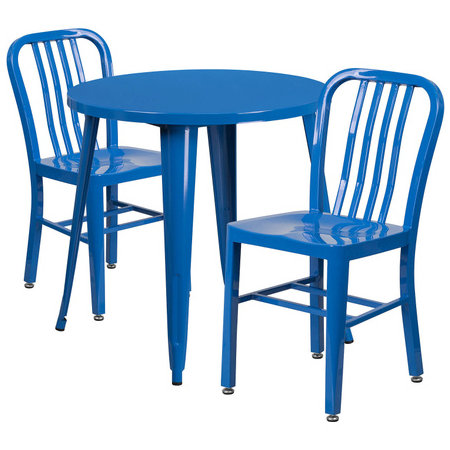 Flash Furniture CH-51090TH-2-18VRT-BL-GG, 30" Round Top Indoor / Outdoor Steel Cafe Dining Set w/ 2 Chairs, Blue