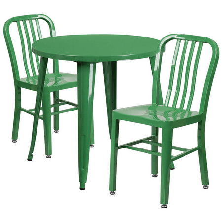 Flash Furniture CH-51090TH-2-18VRT-GN-GG, 30" Round Top Indoor / Outdoor Steel Cafe Dining Set w/ 2 Chairs, Green