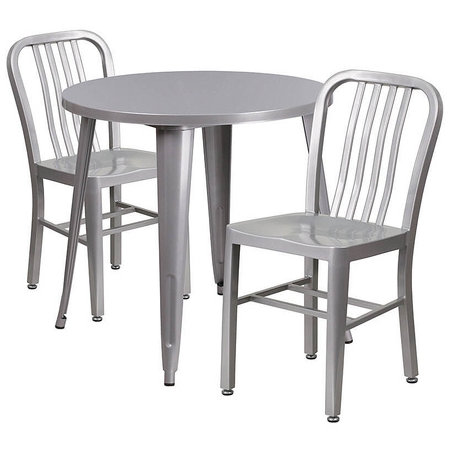 Flash Furniture CH-51090TH-2-18VRT-SIL-GG, 30" Round Top Indoor / Outdoor Steel Cafe Dining Set w/ 2 Chairs, Silver