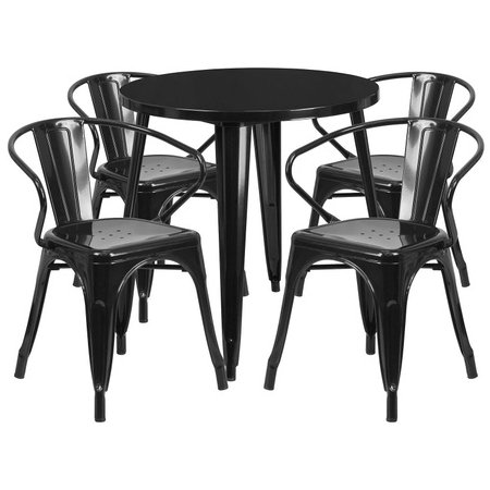 Flash Furniture CH-51090TH-4-18ARM-BK-GG, 30" Round Top Indoor / Outdoor Steel Cafe Dining Set w/ 4 Arm Chairs, Black