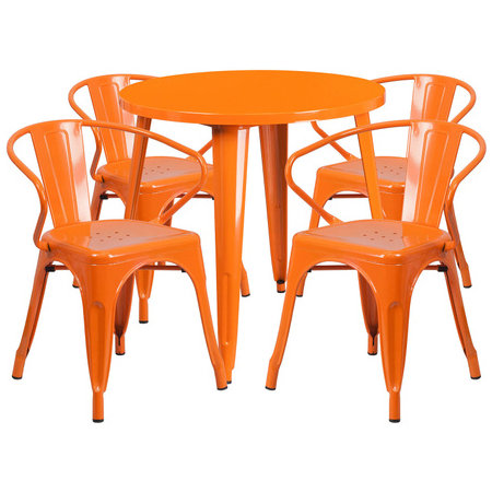Flash Furniture CH-51090TH-4-18ARM-OR-GG, 30" Round Top Indoor / Outdoor Steel Cafe Dining Set w/ 4 Arm Chairs, Orange