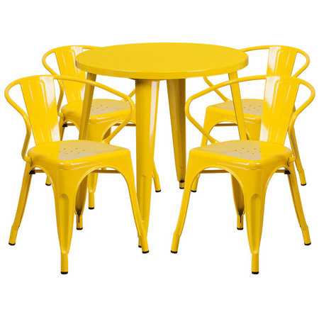 Flash Furniture CH-51090TH-4-18ARM-YL-GG, 30" Round Top Indoor / Outdoor Steel Cafe Dining Set w/ 4 Arm Chairs, Yellow