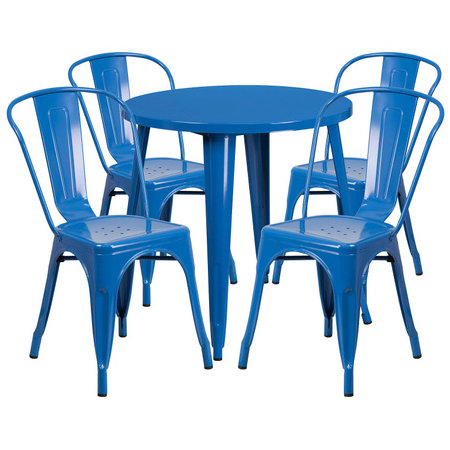 Flash Furniture CH-51090TH-4-18CAFE-BL-GG, 30" Round Top Indoor / Outdoor Steel Cafe Dining Set w/ 4 Chairs, Blue