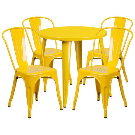Flash Furniture CH-51090TH-4-18CAFE-YL-GG, 30" Round Top Indoor / Outdoor Steel Cafe Dining Set w/ 4 Chairs, Yellow