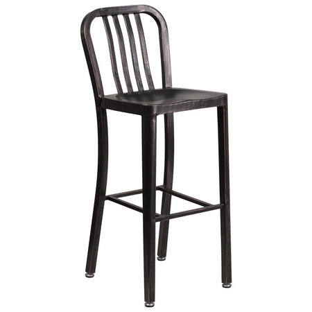 Flash Furniture CH-61200-30-BQ-GG, Indoor / Outdoor Steel Barstool, Black Antique Gold