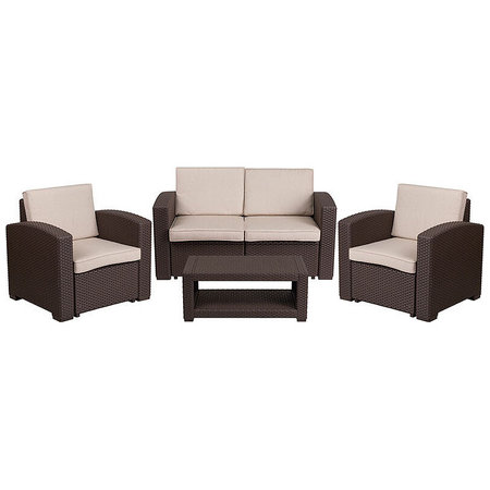 Flash Furniture DAD-SF-112T-CBN-GG, 4-Piece Outdoor Faux Rattan Patio Lounge Set, Chocolate Brown