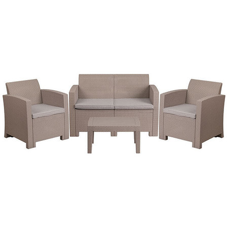 Flash Furniture DAD-SF-112T-CRC-GG, 4-Piece Outdoor Faux Rattan Patio Lounge Set, Light Gray