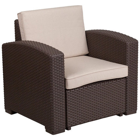 Flash Furniture DAD-SF1-1-GG, Outdoor Faux Rattan Patio Chair w/ Cushion, Chocolate Brown